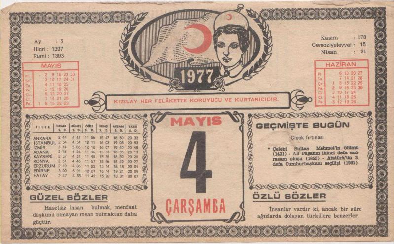 4 Mayıs 1977 - Kızılay Takvim Yaprağı, 3 gün önce satışa sunulmuştur.