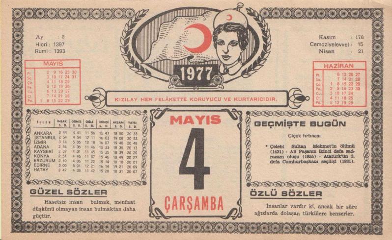 4 Mayıs 1977 - Kızılay Takvim Yaprağı, 3 gün önce satışa sunulmuştur.