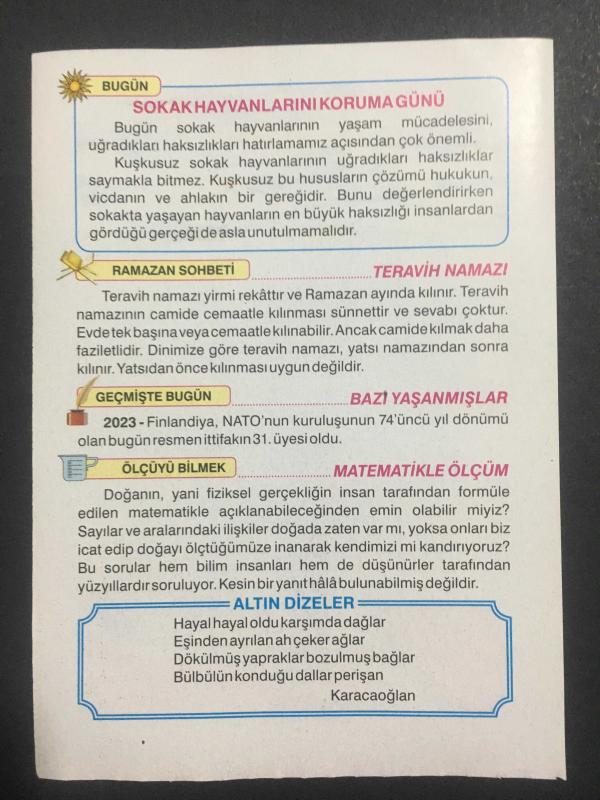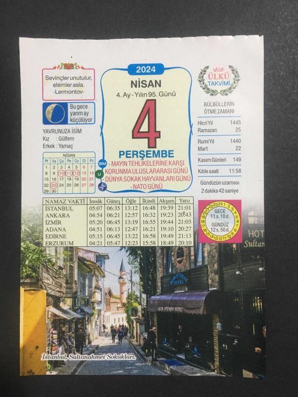 4 NİSAN 2024 -TAKVİM YAPRAĞI-DOĞUM GÜNÜ HEDİYESİ-VASIF ÜLKÜ TAKVİMİ,İSTANBUL SULTANAHMET SOKAKLARI,YAVRUNUZA İSİM,SOKAK HAYVANLARINI KORUMA GÜNÜ,TERAVİH NAMAZI,FİNLANDİYA NATOYA GİRDİ 2023,MATEMATİKLE ÖLÇÜM,ALTIN DİZELER, en son 8 ay önce güncellenmiştir.