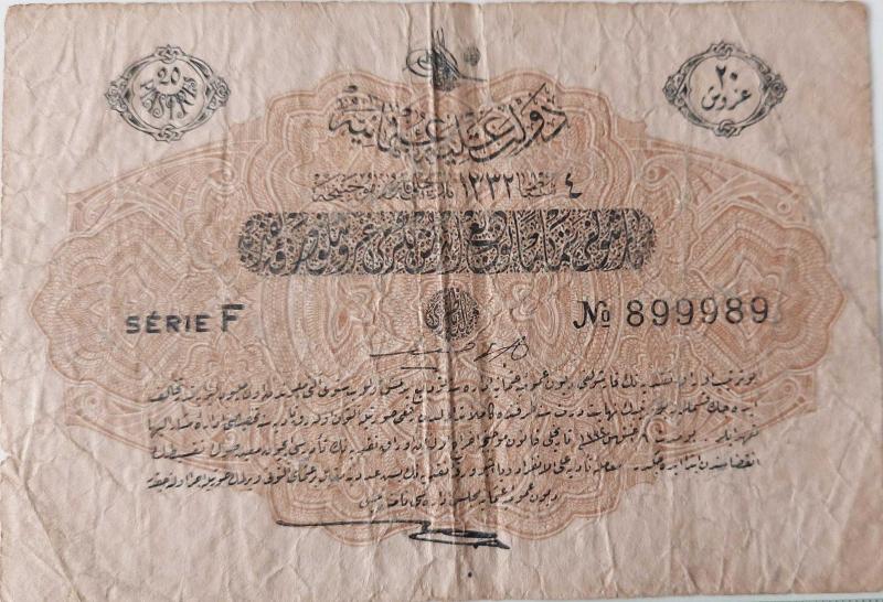 4 ŞUBAT 1332 REŞAT 20 KURUŞ ORİJİNAL KAĞIT PARA SERIE F 899989 ÇOK NADİR, 2 gün önce satışa sunulmuştur.