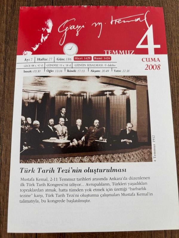 4 TEMMUZ 2008 - TAKVİM YAPRAĞI - DOĞUM GÜNÜ HEDİYESİ - GAZİ MUSTAFA KEMAL ATATÜRK FOTOĞRAFLI BÜYÜKÇEKMECE BELEDİYESİ TAKVİMİ - Türk Tarih Tezi'nin oluşturulması-1546- Kaptan-ı Derya Barbaros Hayrettin Paşa öldü.-1934- Fransız fizikçi ve Nobel ödülü sahibi Marie Curie öldü. -2003- Yazar Tomris Uyar öldü. -2003- Anıtkabir'in mimarlarından mimar Prof. Dr. Ahmet Orhan Arda öldü., en son 9 ay önce güncellenmiştir.