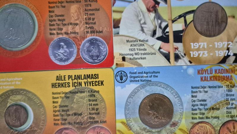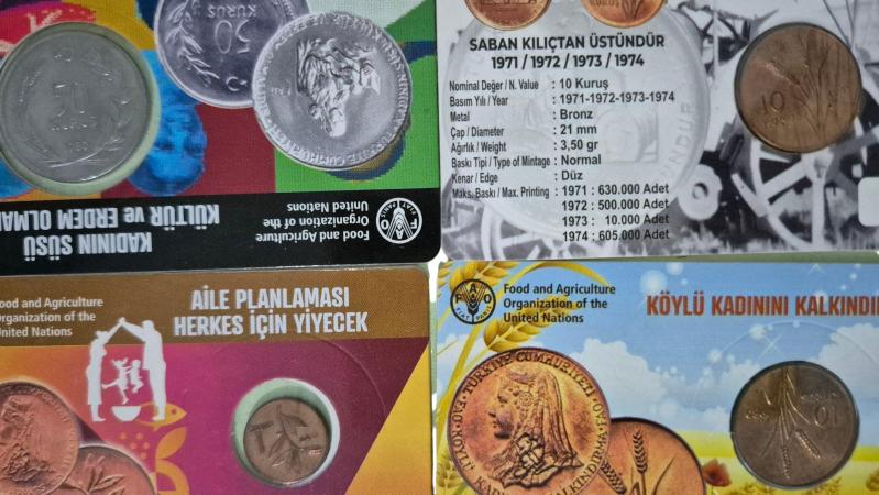 4 farklı hatıra para lotu çil 1971 saban kılıçtan üstündür 10 kuruş 1980 kadının süsü 50 kuruş 1980 köylü kadını kalkındırma 10 kuruş 1979 yılı aile planlaması 1 kuruş