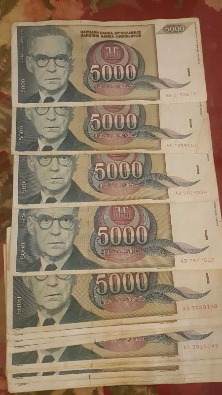 Yugoslavya 5000 Dinar toplam 40 adettir.40 adet fiatıdır. Toplu gönderilecektir.