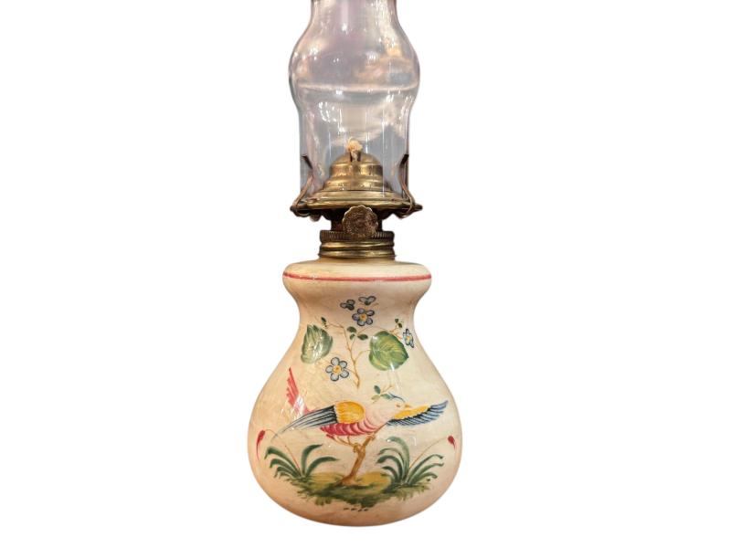 40 cm boyunda Fransız porselen gaz lambası başlıklı antika/koleksiyon objesi Avrupa menşe’lidir. 1950-1999 arası dönemine aittir.