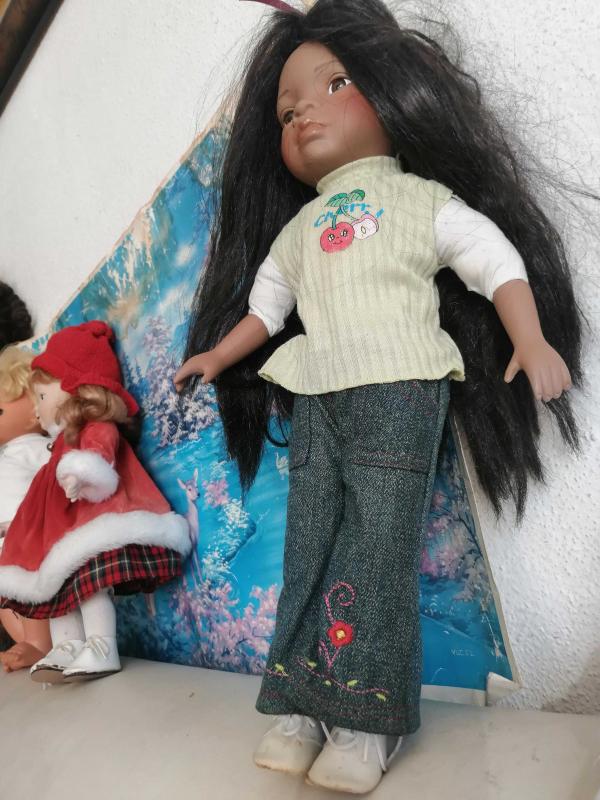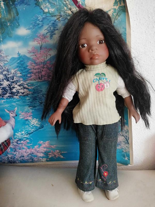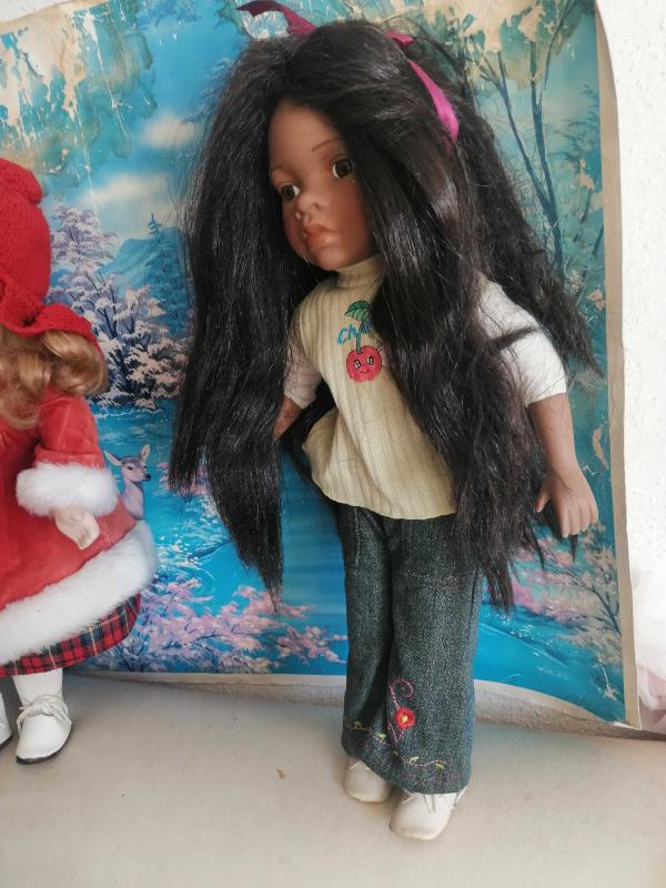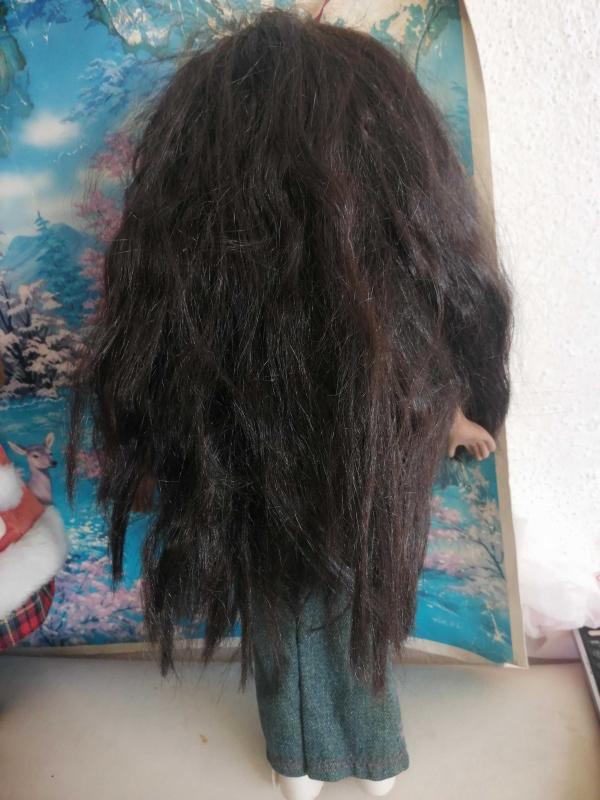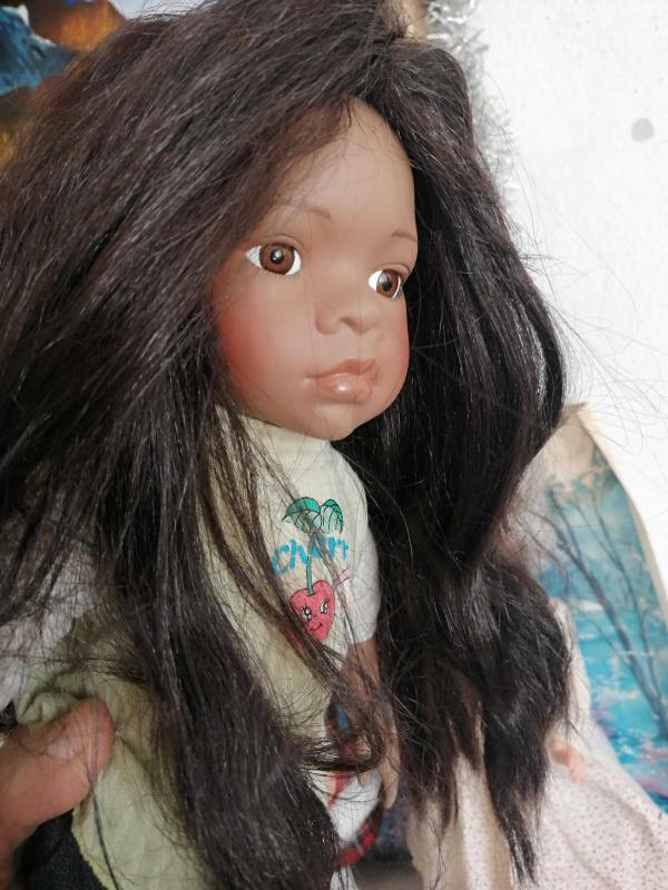 41 cm DAMGALI SİYAHİ PORSELEN BEBEK, UZUN SAÇLI KARAKTER ÇOK GÜZEL, dün kitantik’te satışa sunulmuştur.
