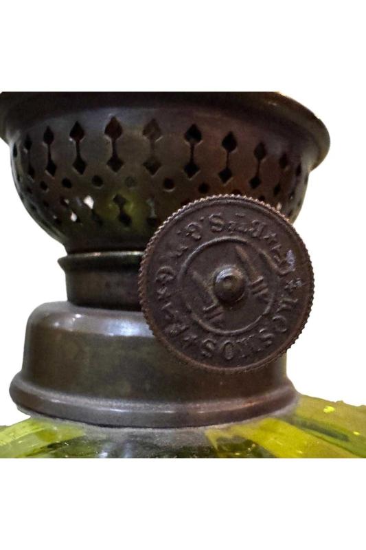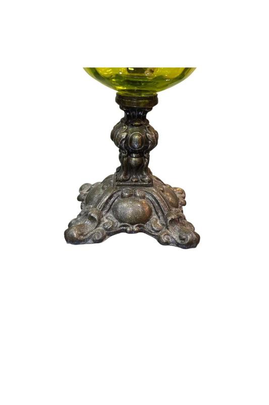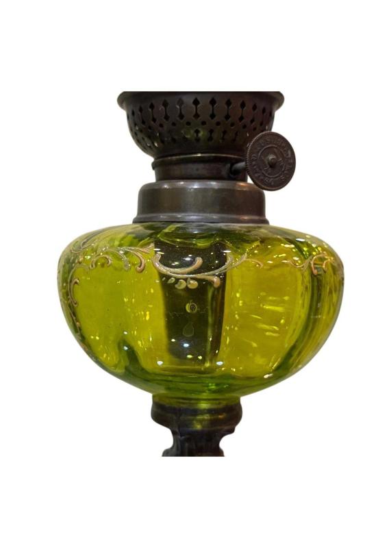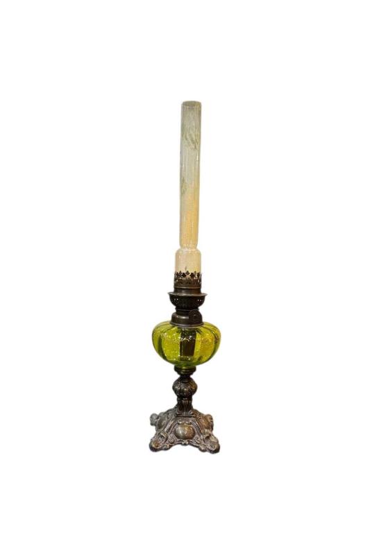 44 cm boyunda Fransız pirinç ve camdan gaz lambası.; Renk: Yeşil Beden: Tek Ebat Marka: tayfuntufan antika koleksiyon Kategori İsmi: Dekoratif Obje ve Biblo
