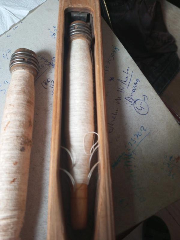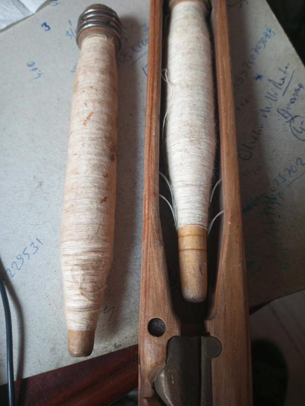 45 cm ahşap kilim ve halı mekiği takılı ahşap makarası ve yedeği ile birlikte başlıklı antika/koleksiyon objesi Türkiye menşe’lidir. 1940-1959 arası dönemine aittir.