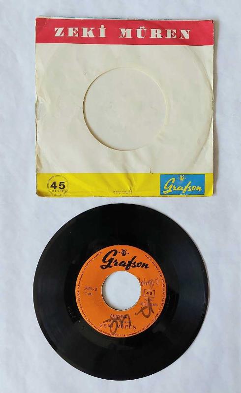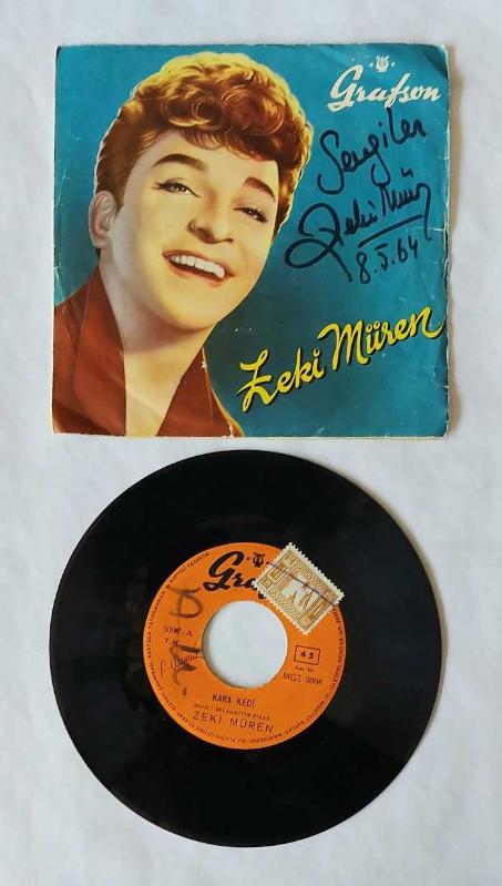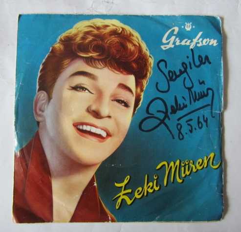 Sevgiler Zeki Müren 8.5.64 şeklinde imzalı. Plağın ortası yoktur. Orijinal imzalı kapağında.