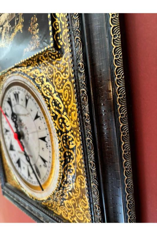 46 cm x 33 cm ölçülerinde istanbul Galata görselli Osmanlıca rakamlı pilli duvar saati başlıklı antika/koleksiyon objesinin menşei belirtilmemiştir. Objenin ait olduğu dönem bilinmeketedir.