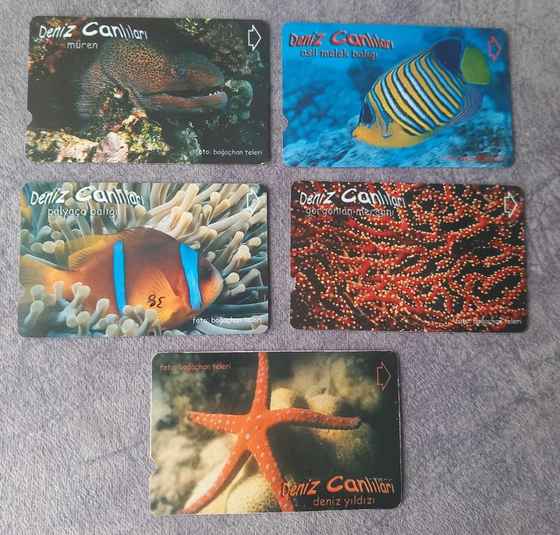 5 ADET DENİZ CANLILARI TEMALI TELEKOM TEFON KARTI KONDİSYON YÜKSEK KOLEKSİYONLUK NADİR
