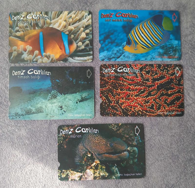 5 ADET DENİZ CANLILARI TEMALI TELEKOM TEFON KARTI KONDİSYON YÜKSEK KOLEKSİYONLUK NADİR