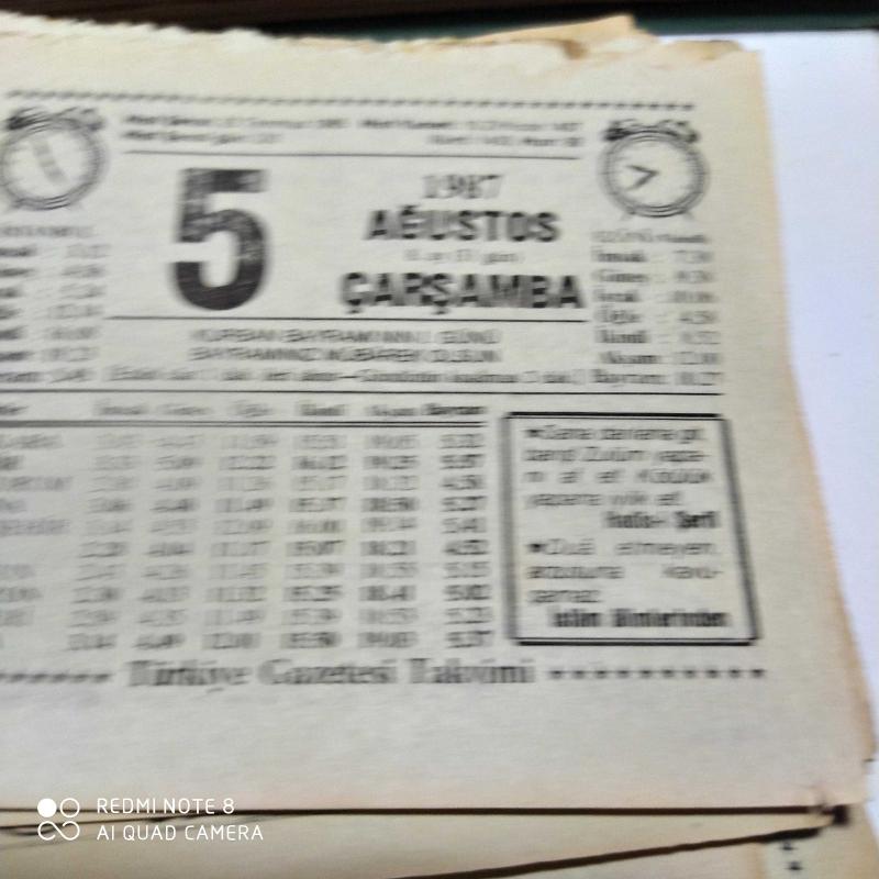 5 AĞUSTOS 1987 TAKVİM YAPRAĞI, 3 yıl önce satışa sunulmuştur.
