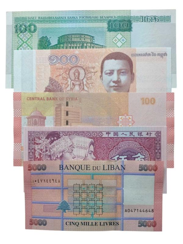 LOT.4 » 5 Adet 5 Farklı Ülke Yabancı Koleksiyon Kağıt Para. Antika Koleksiyon Para.