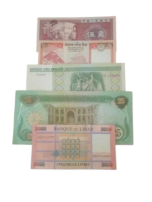 5 Adet Dünya Paraları Yabancı Koleksiyon Kağıt Para. Eski Para . Yabancı Kağıt Para.