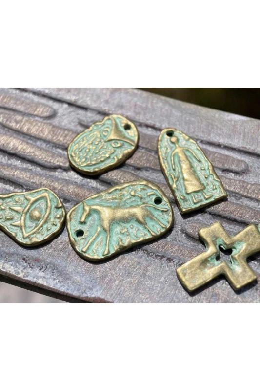 5 Adet Eskitilmiş Kolye Ucu Tasarım.; 5 farklı kolye ucu.; Hepsi eskitilmiş antika görünümlü tasarım kolye uçları.; Fiyat 5 adet içindir, tek satış yoktur.