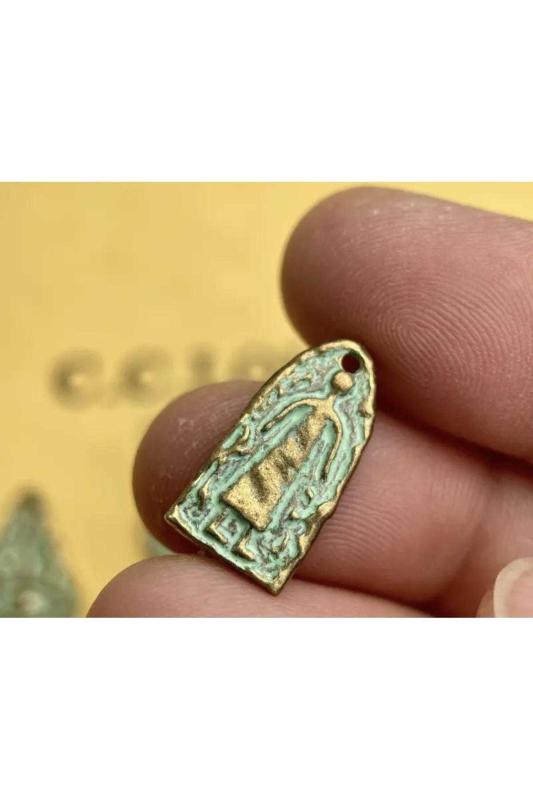 5 Adet Eskitilmiş Kolye Ucu Tasarım. 5 farklı kolye ucu. Hepsi eskitilmiş antika başlıklı antika/koleksiyon objesinin menşei belirtilmemiştir. Objenin ait olduğu dönem bilinmeketedir.