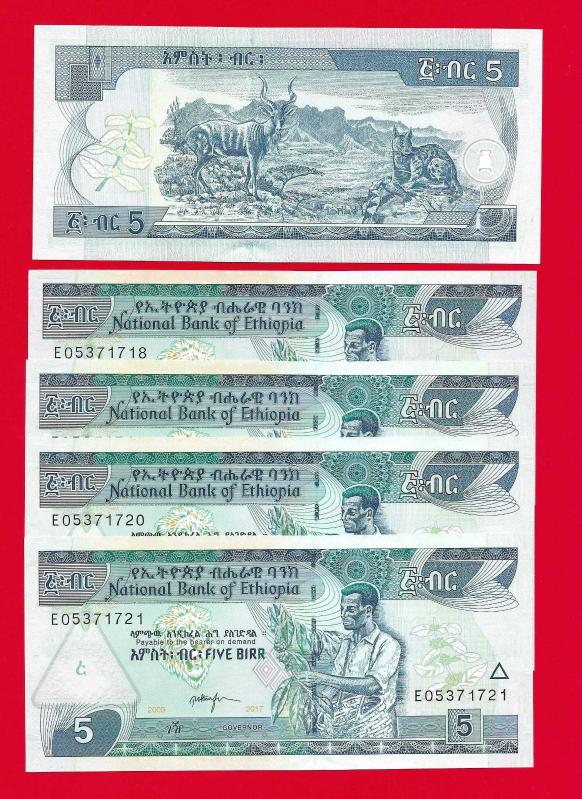 5 Adet Ethiopia 5 Birr 2009-2017 P 47 UNC ÇİL, 3 gün önce satışa sunulmuştur.