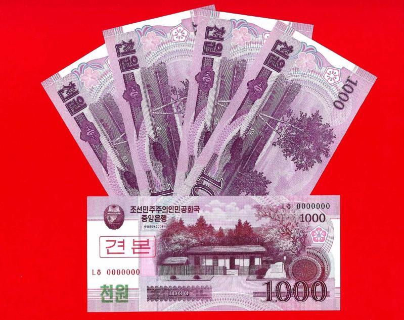 5 Adet Kuzey Kore, 1.000 Won, 2009 p64a, SPECIMEN ÇİL, bir ay önce satışa sunulmuştur.