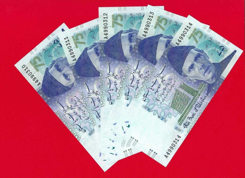 5 Adet Pakistan 75 Rupees 2023 P 57 Blue 75th Comm. NEW State Bank UNC ÇİL, 3 gün önce satışa sunulmuştur.
