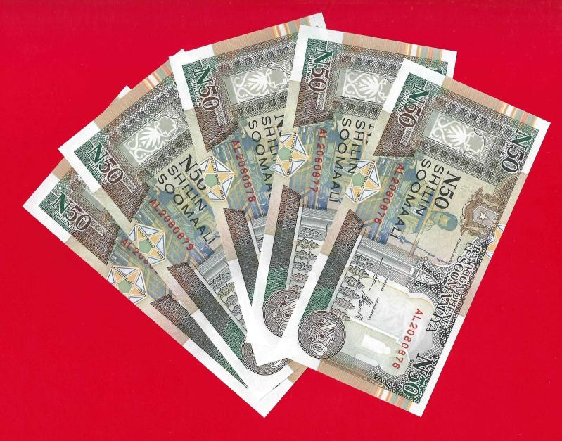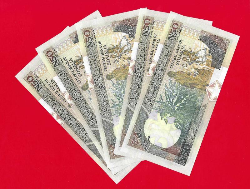 5 Adet Somalia 50 New-Somali Shillings, 1991, P-R2, UNC ÇİL, bir ay önce satışa sunulmuştur.