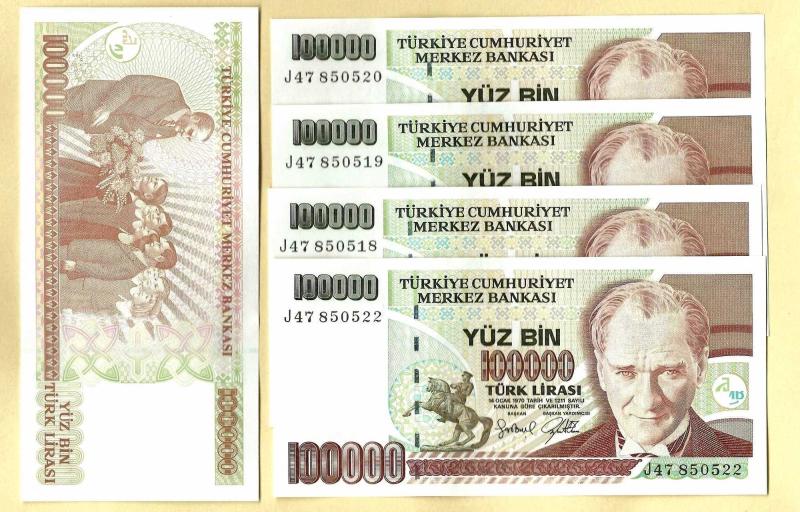 5 Adet TURKEY 100 000 Lira -----PREFIX J ----- 1979 UNC ÇİL, bir ay önce satışa sunulmuştur.