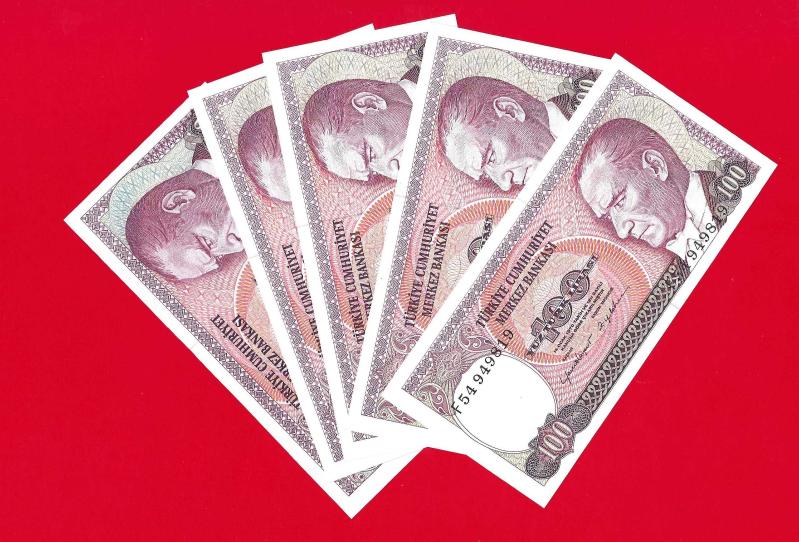 5 Adet TURKEY 100 Lira ----- PREFIX F -----1983 UNC ÇİL, 19 saat önce satışa sunulmuştur.