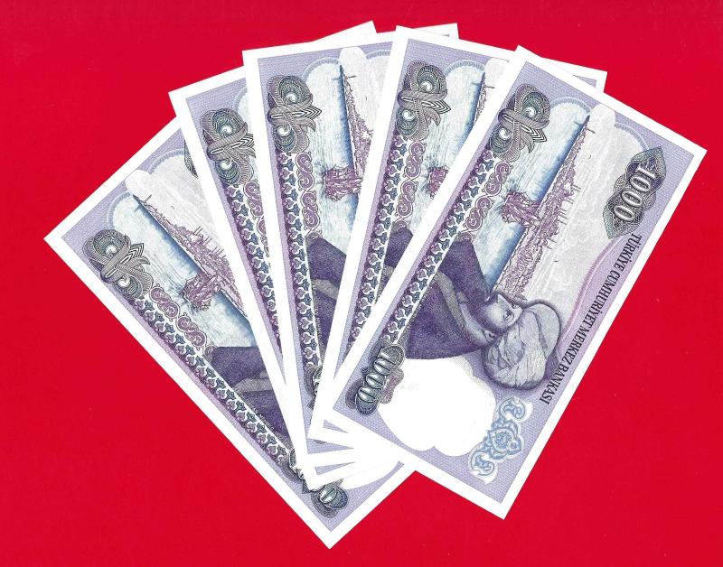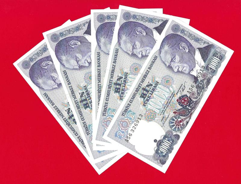 5 Adet TURKEY 1000 LIRA PREFIX--- A --- (P196) L.1970 (1986) UNC ÇİL, 19 saat önce satışa sunulmuştur.
