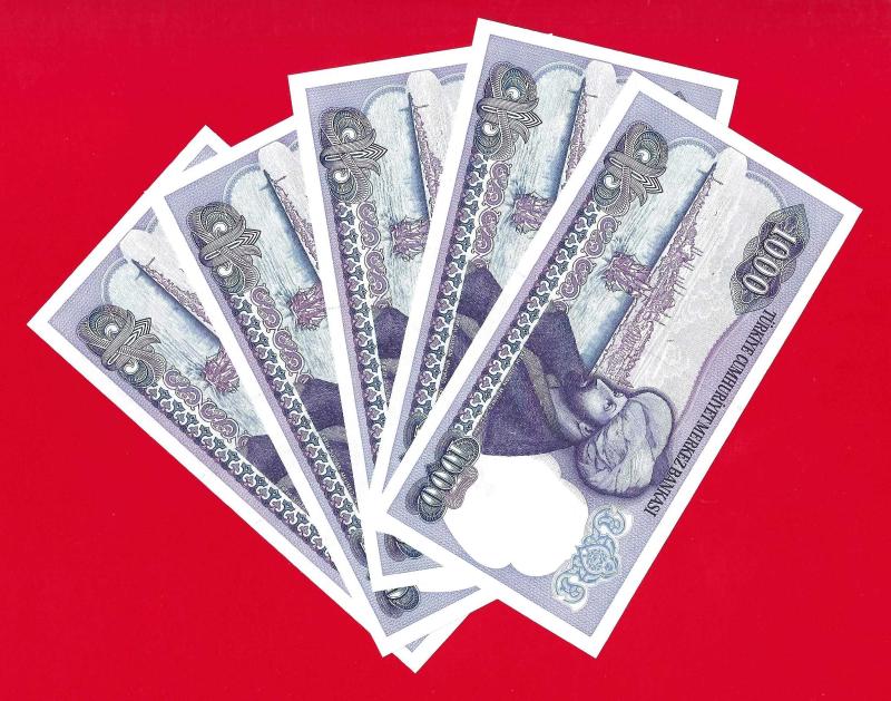 5 Adet TURKEY 1000 LIRA PREFIX--- J --- (P196) L.1970 (1986) UNC ÇİL, dün satışa sunulmuştur.