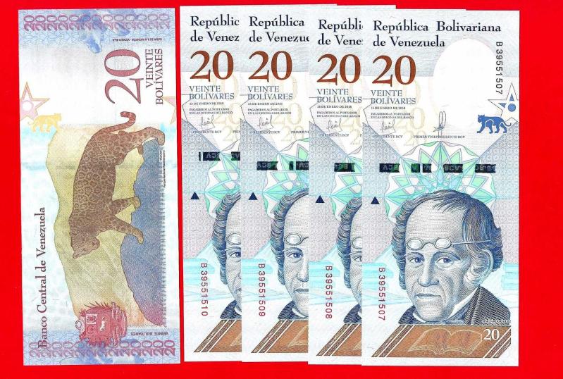 5 Adet Venezuela 20 Bolivares Soberano, 2018, P-104, UNC ÇİL, dün satışa sunulmuştur.