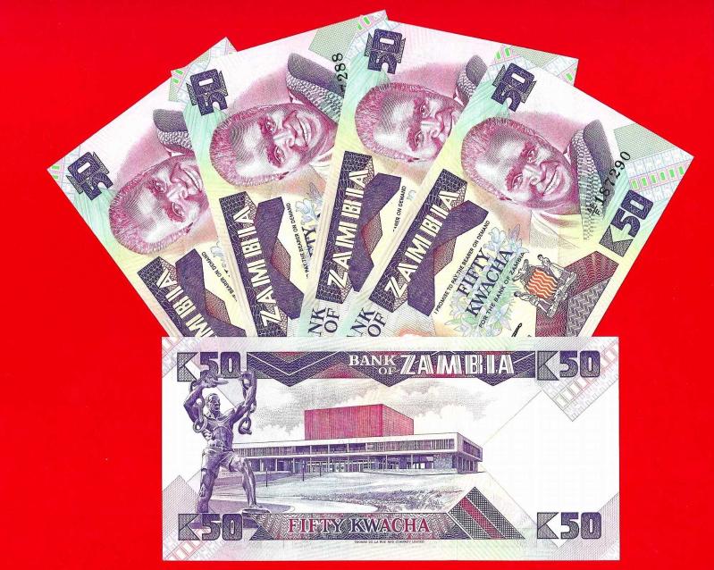 5 Adet Zambia, 50 Kwacha, ND (1986-1988), P-28, UNC ÇİL, bir ay önce satışa sunulmuştur.
