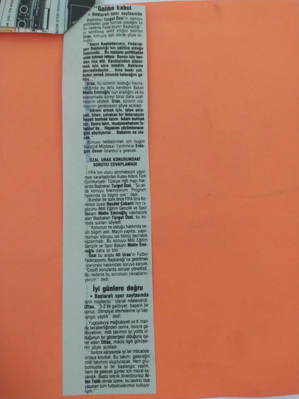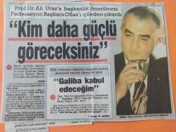 Kitap 1986 yılında yayınlanmıştır. 5 Aralık 1986 - Güneş Gazetesi - Prof. Dr. Ali Uras'a başkanlık önerilmesi Federasyon Başkanı Oflas'ı çileden çıkardı - ''Kim daha güçlü göreceksiniz'' - Ali Uras: ''Önce olmuyor'' dedi, Şimdi ağız değiştirdi - Gazete tam değil kupürüdür - 23x24cm ebatındadır.. adlı eser Türkçe dilindedir.