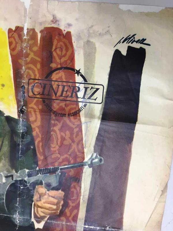 Sattığımız afiş / posterler dönemine ait orijinal ürünlerdir. Fotoğraflarda kondisyonları görebilirsiniz., Kondisyonlar temiz durumdadır. Aksi bir durum olduğunda ilave fotoğraf ve bilgi yer alacaktır. Kondisyon: Fotoğrafta görüldüğü gibi, üçe ayrılmış olan afiş restorasyonla yeniden birleştirilmiştir ve bazı hasarlı yerlere onarım yapılmıştır. 140 x 100 cm ebadında, büyük boydur. Çok nadir bulunur. Yüksek koleksiyon değerindedir.