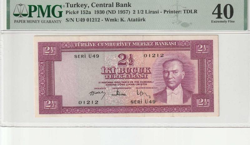 5.EMİSYON 2,5 TL İKİBUÇUK (2½) TÜRK LİRASI SERİ Ü49 PMG sertifikalı
