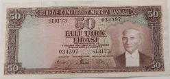 5.EMİSYON 4.TERTİP 50 ELLİ TL SERİ T3 034597 SERİ NUMARALI NATÜREL NADİRDİR KATALOK,1.500 DOLAR