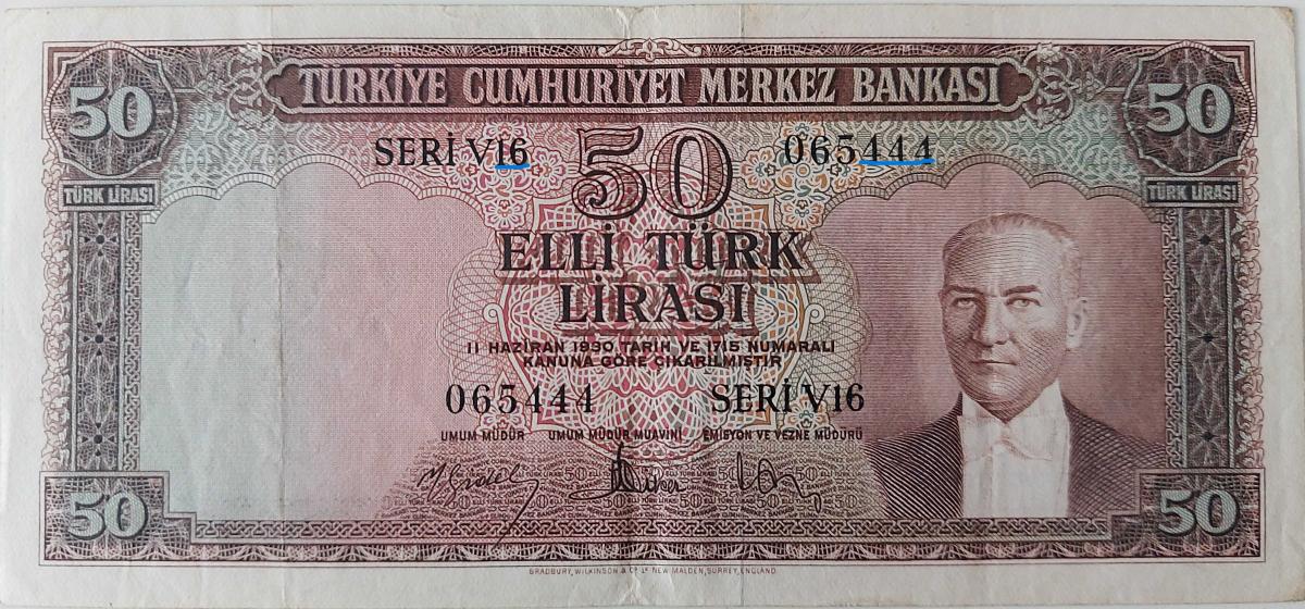 5.EMİSYON 4.TERTİP 50 TÜRK LİRASI SERİ V16 065444 SERİ NUMARALI KAĞIT PARA NATÜREL ÇOK ÇOK TEMİZ EMİSYONUNUN NADİRİDİR, en son 7 saat önce güncellenmiştir.