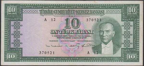 5 EMİSYON 6. TERTİP 10 LİRA SERİ A12 370521 ÇÇT
