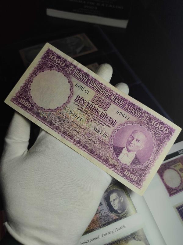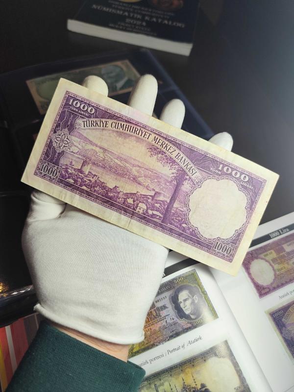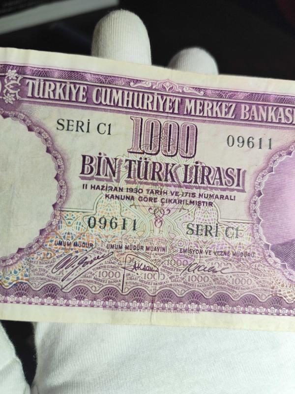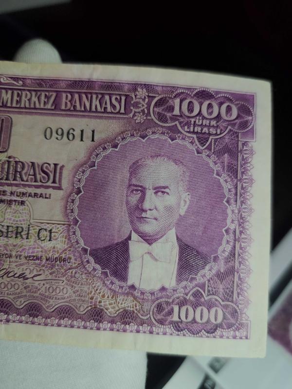 5. Emisyon 1000 Lira (Mor Binlik) 5. Emisyonun en değerli parasıdır. Kağıt kalitesi çok iyi. Çok çok temize yakın bir para. Bu kondisyonda kolay kolay bulunacak bir para değil. Arka üst bordürde ufak bir silinme var onun haricinde natüreldir. Her koleksiyonerin klasüründe mutlaka olması gereken bir para.
