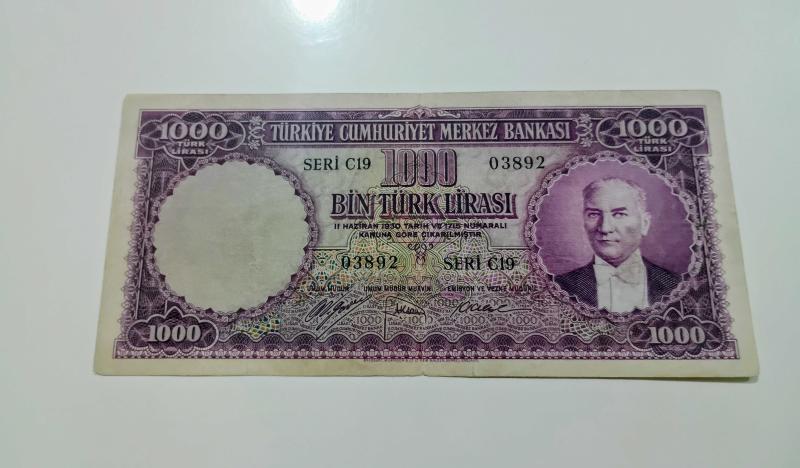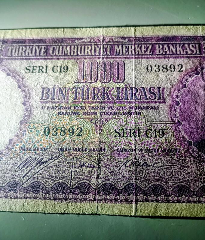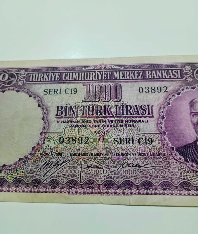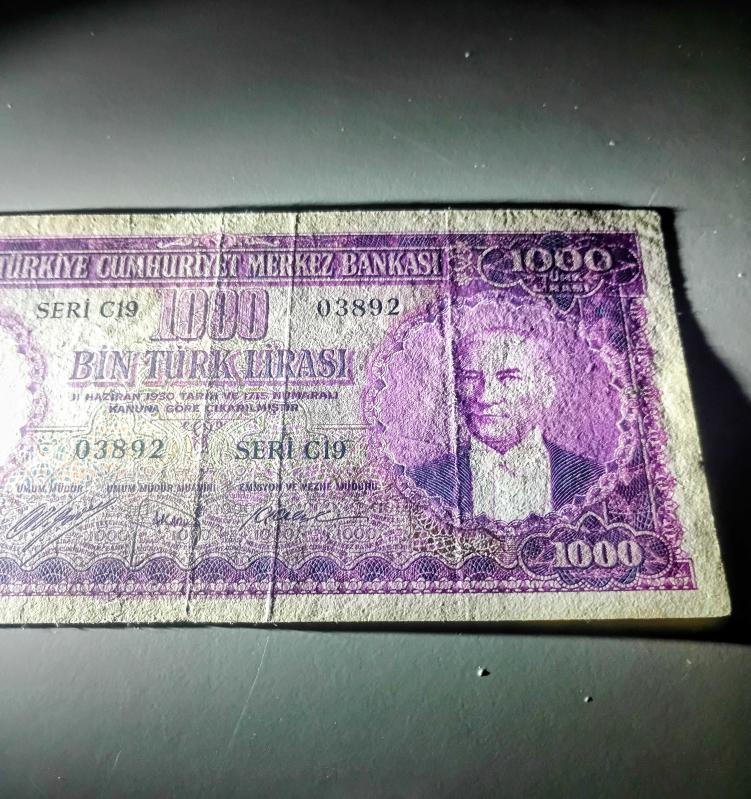 5. Emisyon 1.000 lira nam-ı diğer mor binlik çok temiz kondisyonda kağıt kalitesi çok iyi..Dolgu tamir yoktur. Ful natürel bir ürün. nadir çıkar