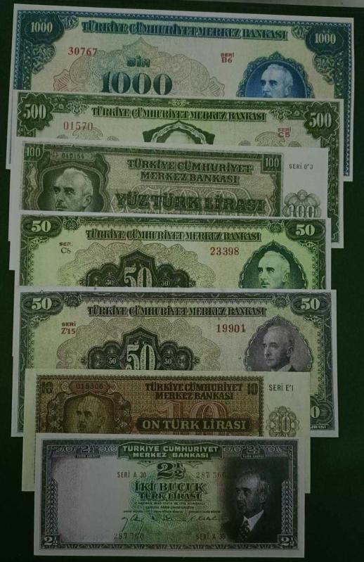 5 Emisyon 1947-1952 kullanılan Banknotların matbu fotokopi baskısı (gerçek değildir)7 adet