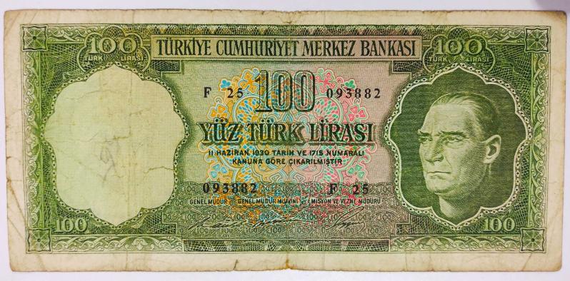 5.Emisyon 6.Tertip 100 Lira F25 093882.., bir ay önce satışa sunulmuştur.