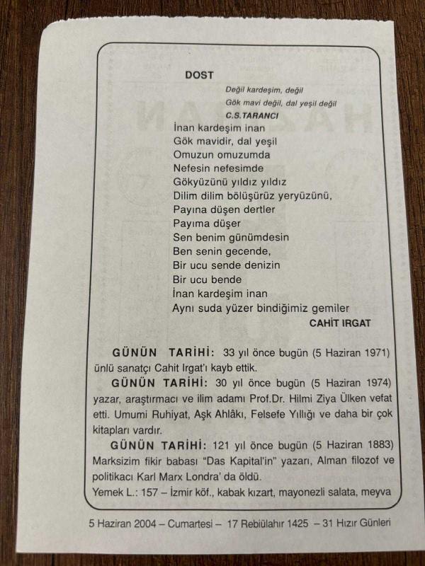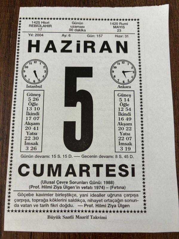 5 HAZİRAN 2004 - TAKVİM YAPRAĞI - DOĞUM GÜNÜ HEDİYESİ - BÜYÜK SAATLİ MAARİF TAKVİMİ - PROF.HİLMİ ZİYA ÜLGEN - CAHİT IRGAT - YAZAR,ARAŞTIRMACI PROF.HİLMİ ZİYA ÜLGEN'İN VEFATI - ÜNLÜ SANATÇI CAHİT IRGAT VEFAT ETTİ - DAS KAPİTAL YAZARI KARL MAX VEFAT ETTİ, en son 8 ay önce güncellenmiştir.