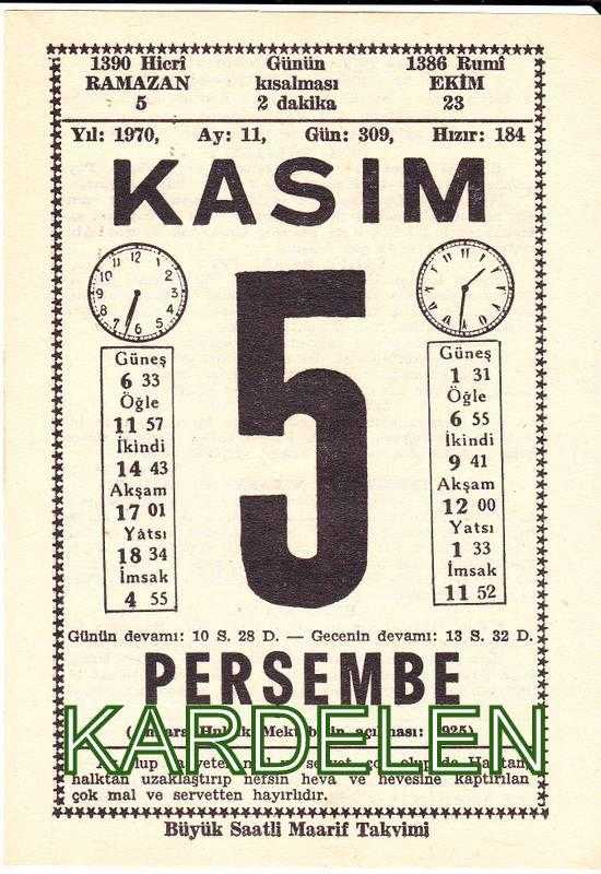 5 KASIM 1970 SAATLİ MAARİF TAKVİMİ YAPRAĞI, en son 1 yıl önce güncellenmiştir.