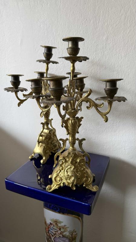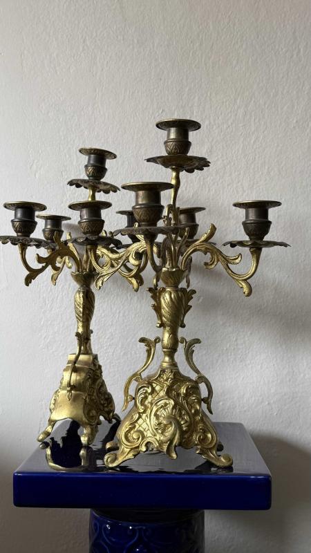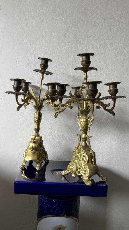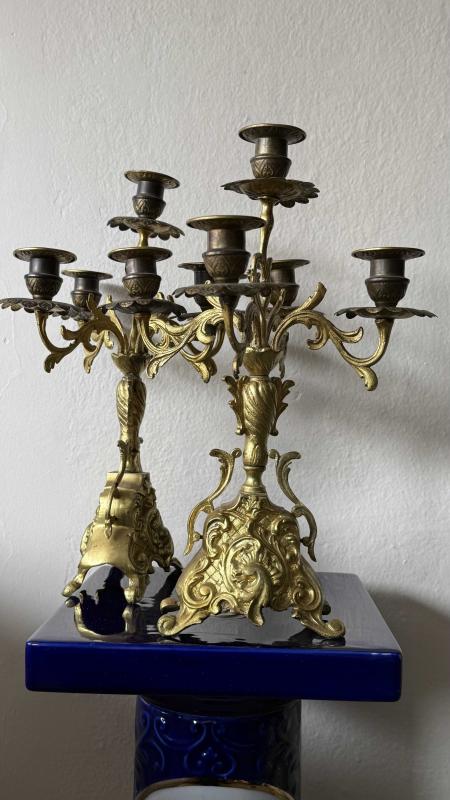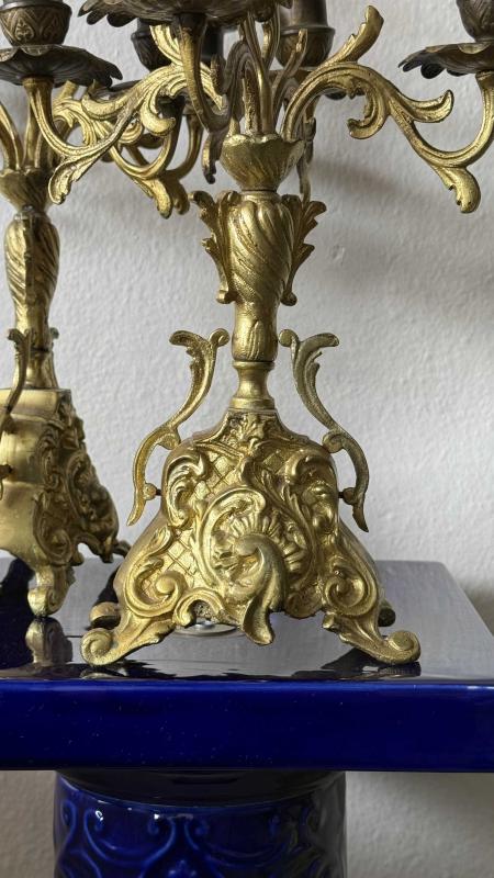 Çift takım dönem eski 5 kolu bronz şamdan kusursuz çok temi