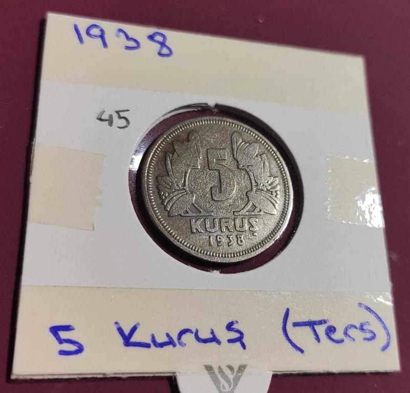 5 KURUŞ 1938 ÇİL+++, 2 yıl önce satışa sunulmuştur.