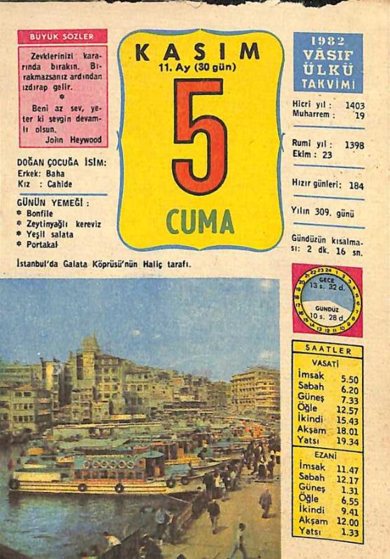 5 Kasım 1982 Takvim Yaprağı - Doğum Günü Hediyesi EFM(N)11878, en son 20 gün önce güncellenmiştir.