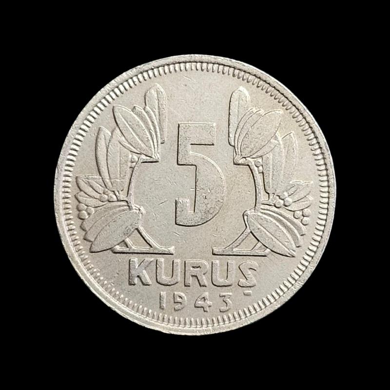 5 Kuruş 1943, KM#862, XF-45/ÇÇT, 13 gün önce satışa sunulmuştur.