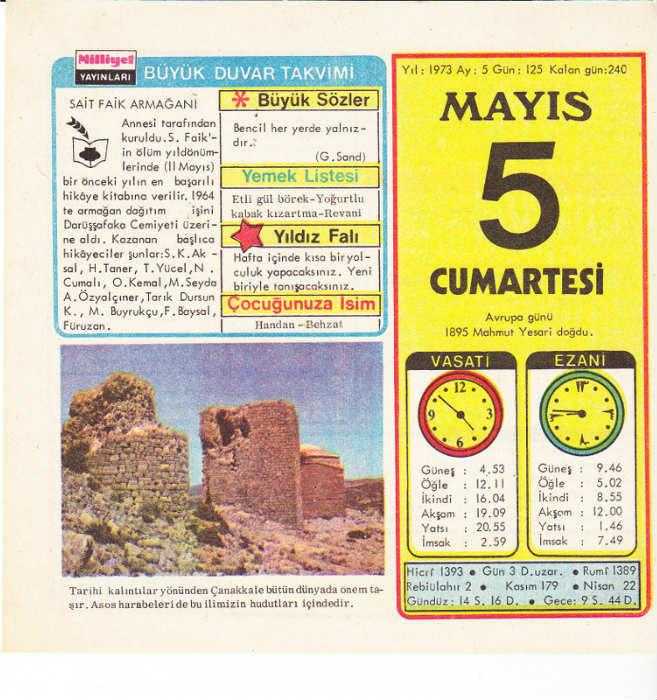 5 MAYIS 1973 MİLLİYET TAKVİM YAPRAĞI, en son 3 ay önce güncellenmiştir.