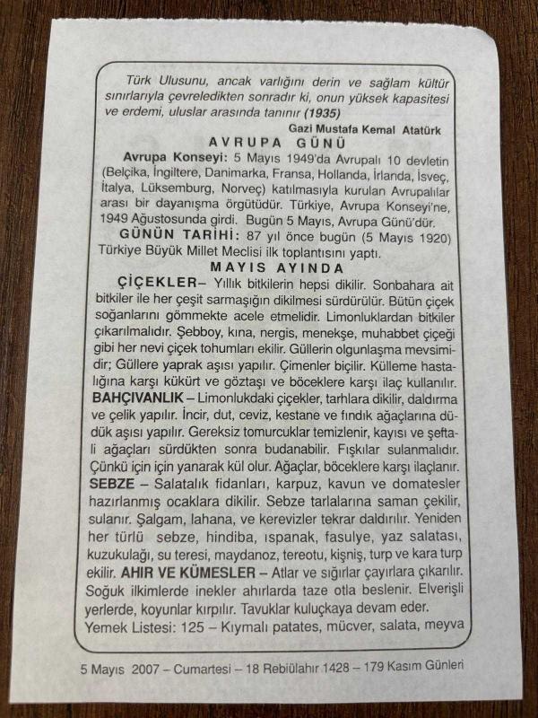 5 MAYIS 2007 - TAKVİM YAPRAĞI - DOĞUM GÜNÜ HEDİYESİ - BÜYÜK SAATLİ MAARİF TAKVİMİ - GAZİ MUSTAFA KEMAL ATATÜRK - İLK TBMM TOPLANTISI - AVRUPA GÜNÜ - MAYIS AYINDA BİLİNMESİ GEREKENLER, en son 8 ay önce güncellenmiştir.