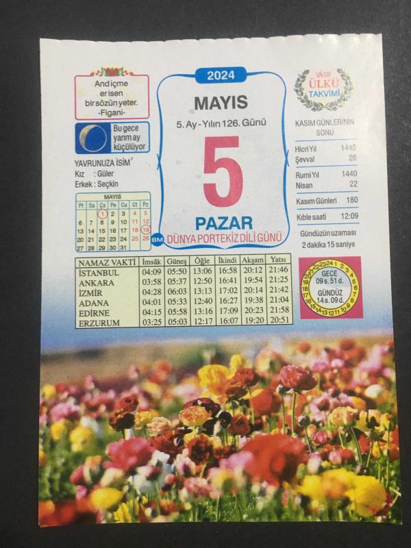 5 MAYIS -TAKVİM YAPRAĞI-DOĞUM GÜNÜ HEDİYESİ-VASIF ÜLKÜ TAKVİMİ,ÇİÇEK,YAVRUNUZA İSİM,YÜKSEKOVA RUS ERMENİ İŞGALİNDEN KURTULDU,1918,68 KUŞAĞI 68 OLAYLARI NEDEN OLAN GENÇLER DÜNYADA ÖĞRENCİ OLAYLARINI BAŞLATTI,1968,STAR 1 YAYINA BAŞLADI,TUNCAY AKGÜN,YAŞAM BİÇİMİNİ PAZARLAMAK başlıklı ürün, Efemera, Müzik, Sinema > Belge ve Evraklar > Takvimler kategorisi altında İkinci El olarak satılmaktadır.