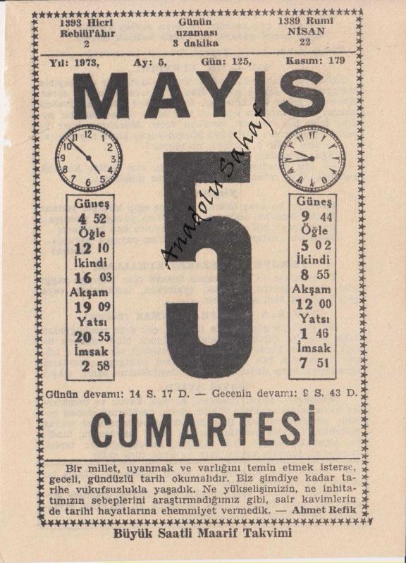 5 Mayıs 1973 /Büyük Saatli Maarif Takvimi, 4 gün önce satışa sunulmuştur.
